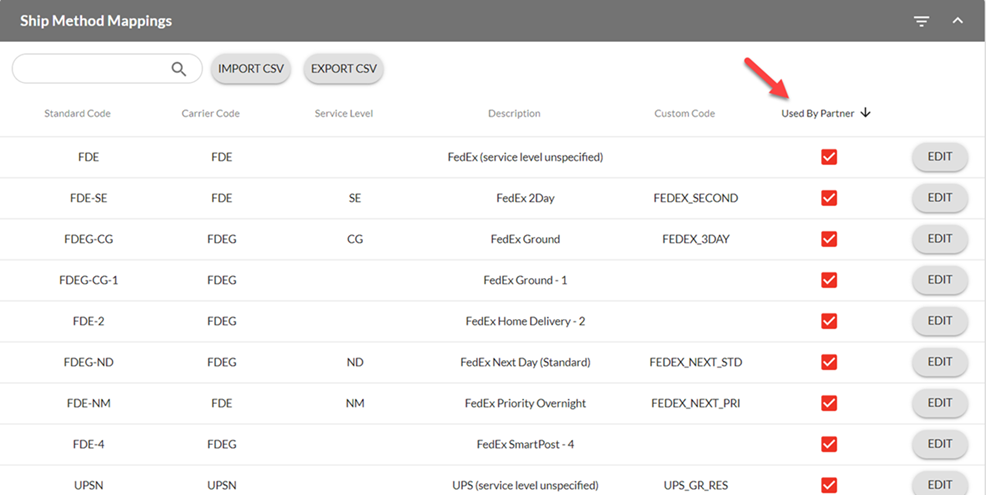 Depending on your integration method, you may use unique shipping codes, these will need to be mapped to our SCAC (Standard Carrier Alpha Code). To set up your custom SCAC mappings: