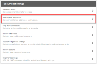 You can set up default or partner-specific remittance addresses. For more information, see Document Settings.