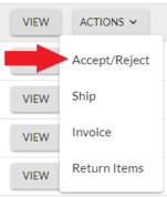 2. On the Order Management page, click on Actions and select Accept/Reject.