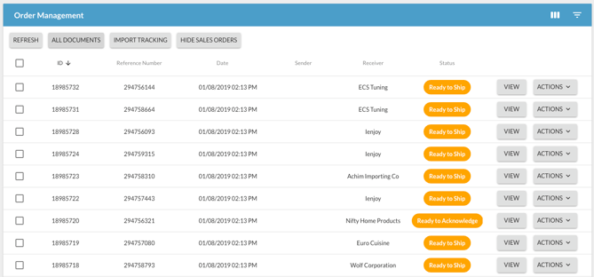 Creating an acknowledgement is how a vendor/supplier communicates that the order has been received and the items have been accepted (or not). This information is transmitted to the retailer so they know what to expect when the order is ready to ship. Follow these steps to create an acknowledgement.