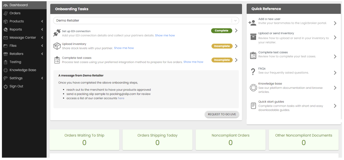 Once you log into the stage portal, you will see the Onboarding Task Manager which will show the onboarding tasks along with the progress. Note: This will only capture completion, not compliance. If there are any errors you need to fix, you may need to revisit the step.