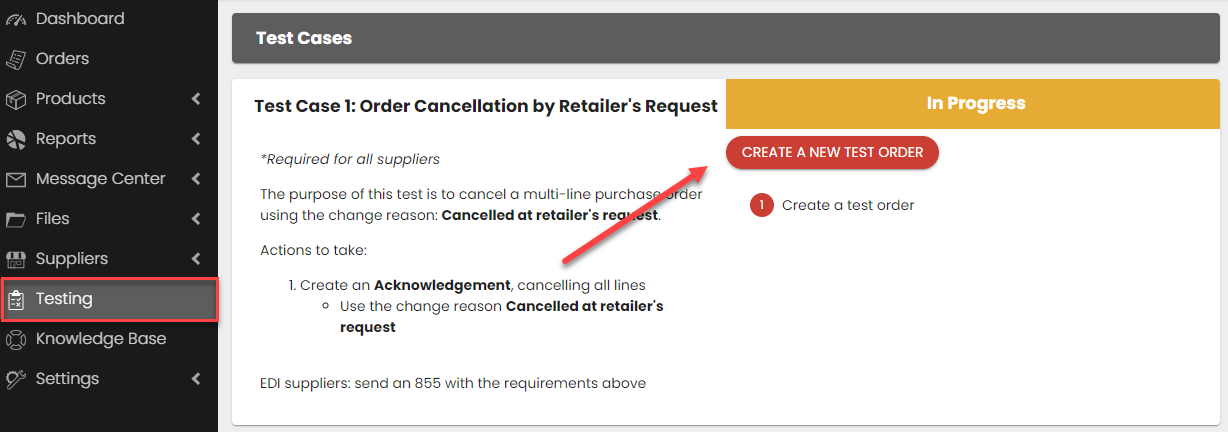 - EDI/API Suppliers: In this step, you will process the required test cases in your system by sending return documents via your EDI/API connection.