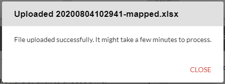 5. A dialogue box will appear advising you of the status of the upload. Click Close.