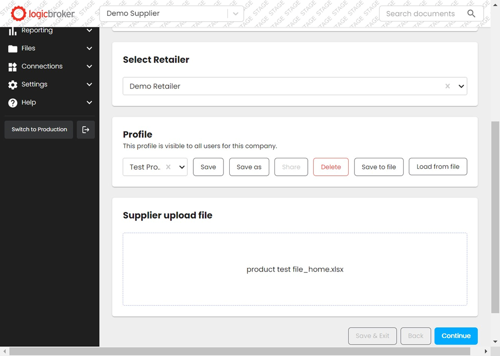 One all the steps are complete and passed initial validation you will be prompted to process this file and send the data to Full Beauty Brands. Click Save & Send to Retailer to process the file.
