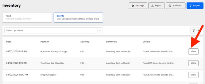 - Events. Events is a full history of all inventory activities, showing all inventory actions taken. The View button allows the user to see the file(s) associated with that specific event. It's useful when looking for historical inventory files as well as a history of who made the update.