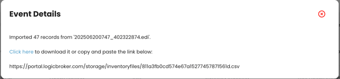 4. After loading the file, wait a minute for the Events section to update to confirm that your file was successfully received and processed. If there was an error, this section is where you would go to view the details of the error.