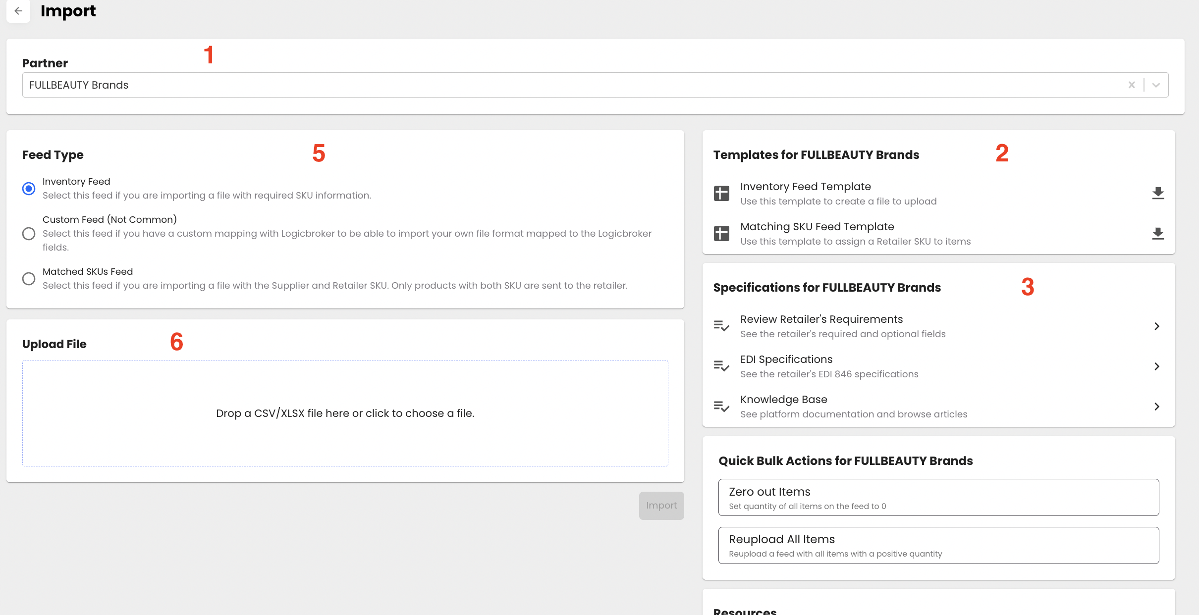 The Import page will allow users to take bulk actions and upload inventory feeds. To import inventory into the portal,