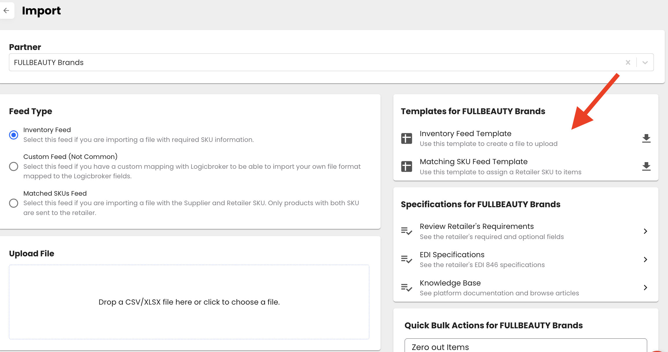 1. To get your template, go to the Import page and click on Inventory Feed Template
