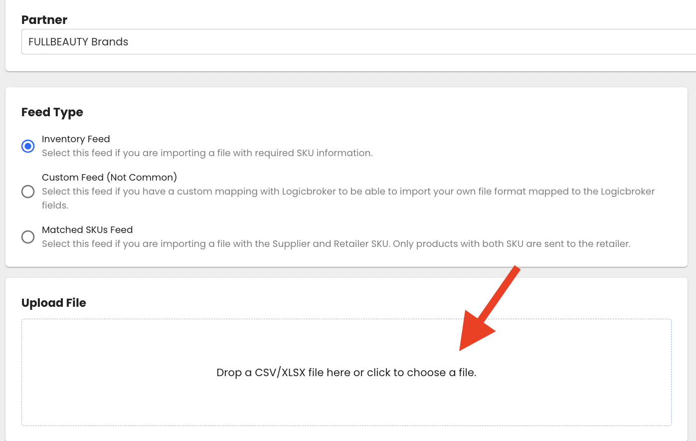 - Merchant Feed and Unmatched Items are only required if directed by Logicbroker or the retailer/partner.