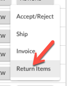 2. On the Order Management page, click on Actions and select Return Items.
