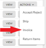 2.  On the Order Management page, click on Actions at the end of the order and select Invoice.