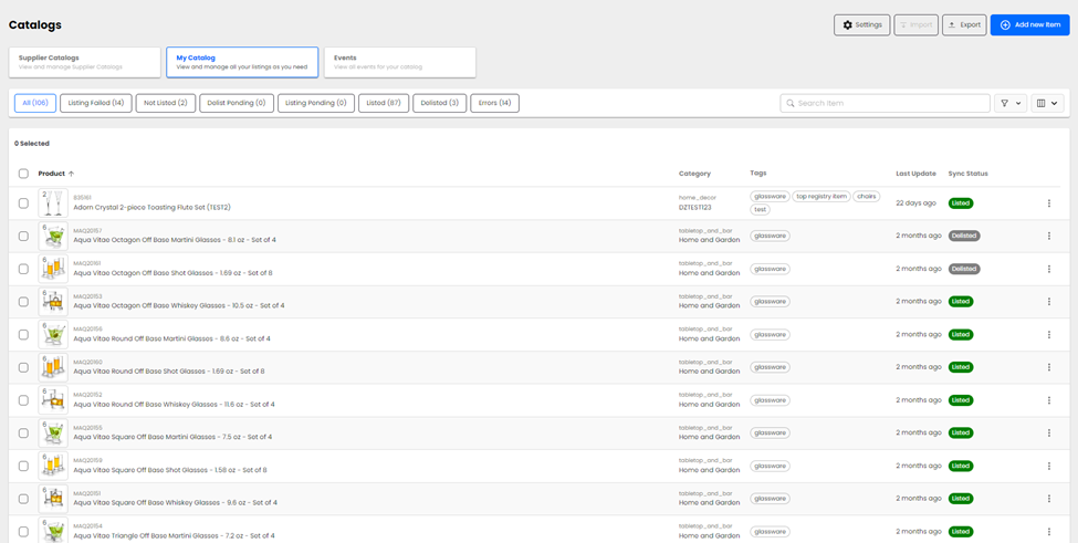 Audience: Retailers use this to configure their taxonomy, showcase product requirements, and review and manage products sent from their suppliers. Suppliers use this functionality to upload products, map their attributes to the retailer's specifications, and collaborate with retail partners.