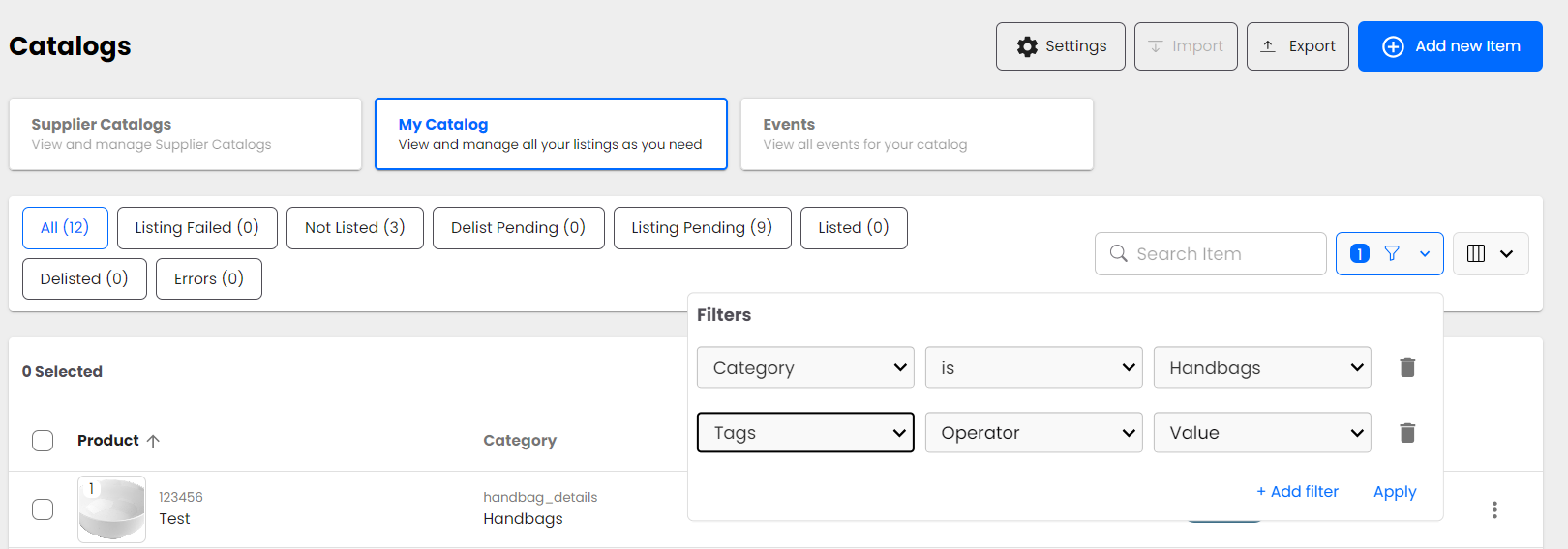 Bulk actions enable retailers to perform actions in bulk to list, delist, delete, or tag products in their catalog.