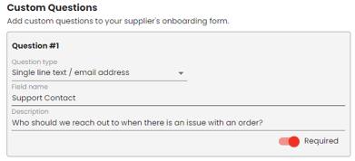 You can collect information from your suppliers from the Onboarding form using up to 5 custom questions.
