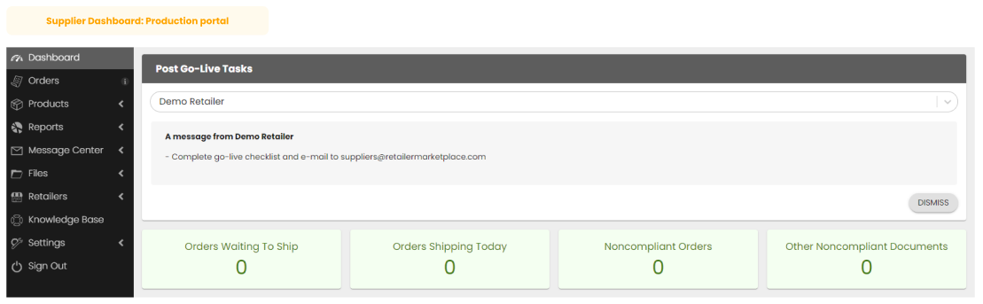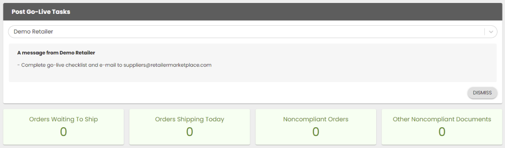 The supplier will complete all post-production onboarding steps mentioned in the Post Go-Live Tasks section of the Dashboard. These steps can include uploading live inventory, configuring production notifications, etc.