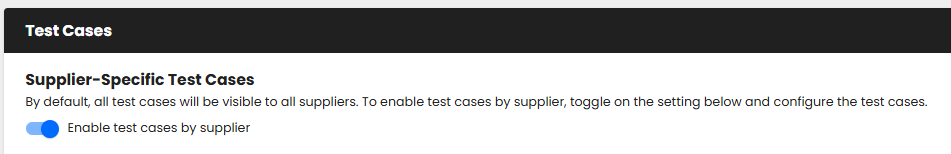 By default, all suppliers will see all test cases - if you want certain test cases to be shown to certain suppliers, you can configure that by first enabling test cases by supplier:
