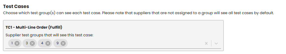 - Assign Groups toTest Cases: For each of the supplier groups you created, assign them to the test cases you want them to have access to. Please note: All groups must be assigned atleast 1 test case