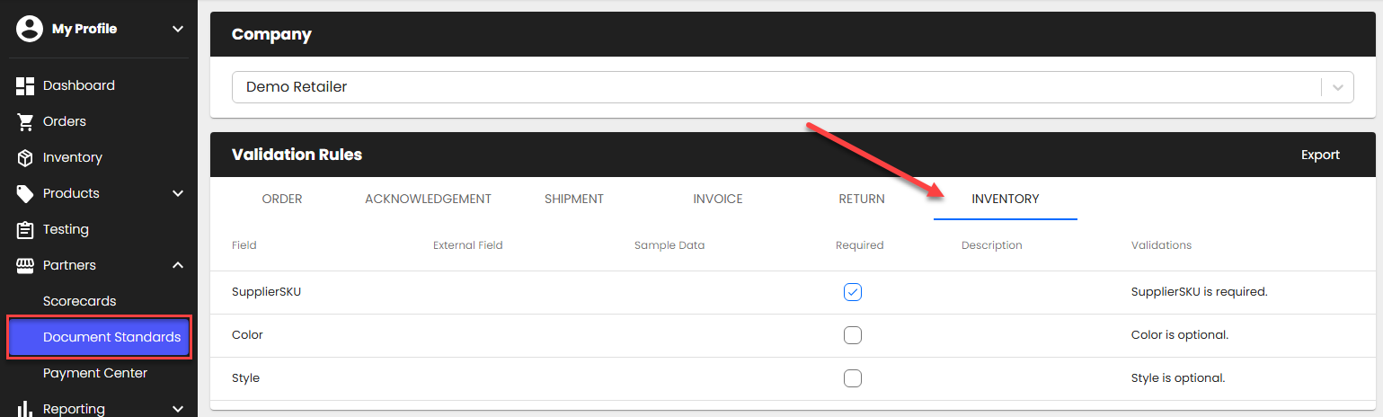 - For Portal and API Suppliers: from the Document Standards page in the portal.