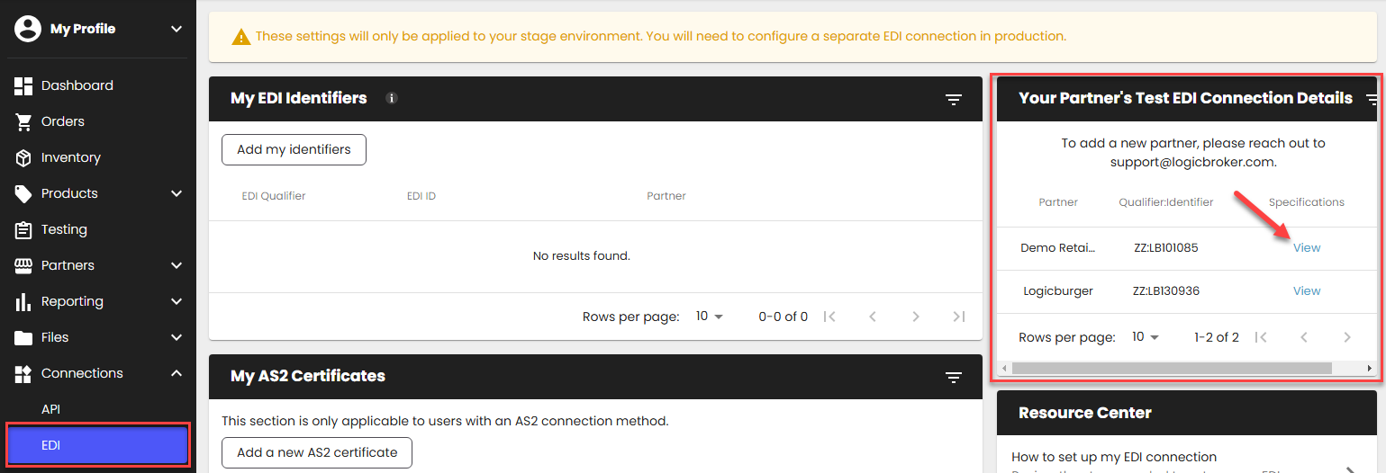 - For EDI Suppliers: from the EDI Connections page.