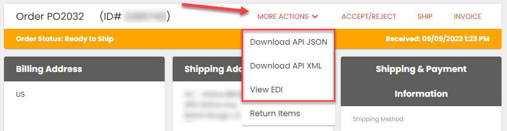 API and EDI suppliers can access raw formats of documents from the portal by opening up the document > More Actions > see available formats: