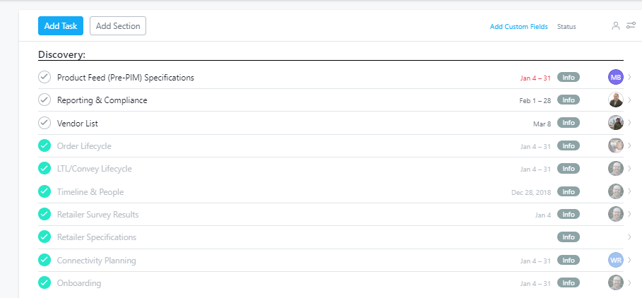 As you kick off your integration, we will set up a project within our project management system, Asana. It is here where we will house all of the communication and tasks involved in setting up the integration. Access will be provided to the project to allow for collaboration for all team members.