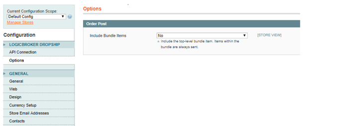 Under the Options tab in the Logicbroker extension configuration, you have the option of including any top-level bundle items on your order. You can change this any time to suit your needs. Regardless of your choice, items within the bundle will always be included.