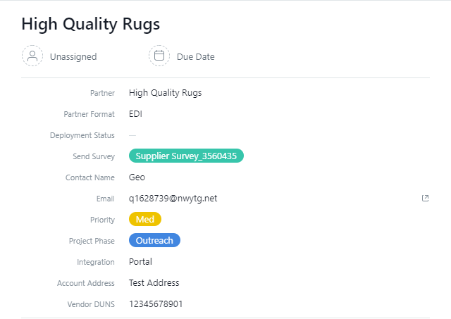 Supplier OutreachWhen contacting suppliers, all contacts are entered in a communication workflow system and tracked with status updates under their task. These are tracked by tags which are automatically updated based on the status.