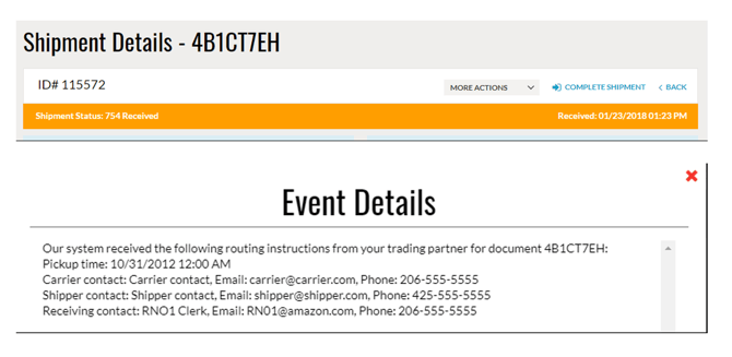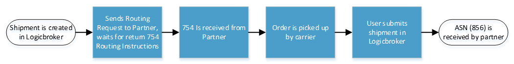 The 754 Routing Instructions will contain details such as pickup date, carrier information, reference numbers and other information required on the ASN (856). The status of the shipment will move to "754 Received" and will wait until the order is picked up by the carrier.