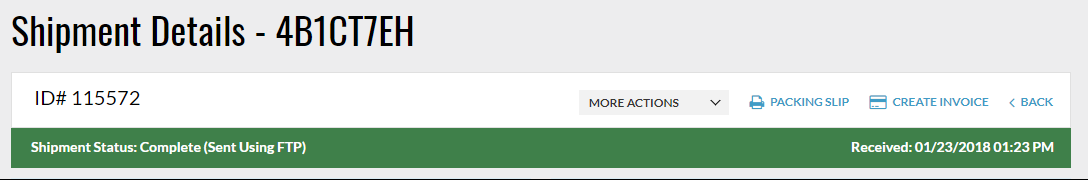 Lastly, once your shipment is picked up by a carrier, you can now submit the Shipment (ASN/856) document indicating that it has been physically shipped. You can do this by clicking "COMPLETE SHIPMENT" next to More Actions.