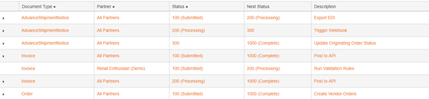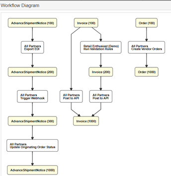 You are a retailer and you want to want to receive documents in one system in EDI format. You also have an API that you want to implement webhooks with so Logicbroker can send you documents in real time. Once those documents are received, you want to update the status of the order within Logicbroker so your customer service representatives have a better idea of what is yet to be fulfilled. Workflows will be used to configure all of these flows
