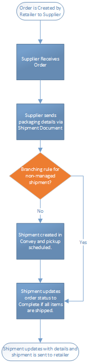 Using the Logicbroker-Convey connector, retailers sending orders to their suppliers can control what carriers are used for the supplier's fulfillment. When enabled a supplier will create a shipment containing all packaging details. This will send to the retailer indicating that the shipment is ready to be picked up.