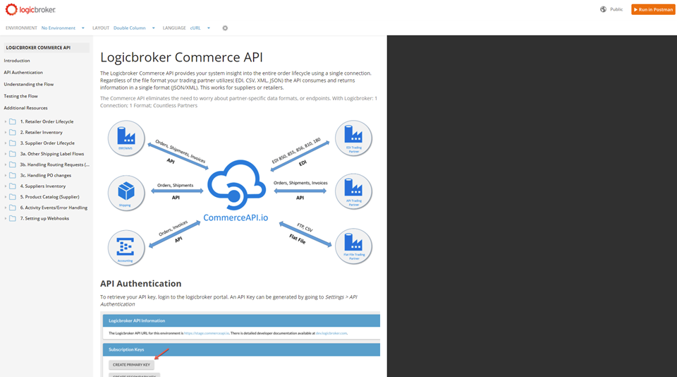Rather than connecting to your legacy provider’s endpoints, your organization will need to connect to Logicbroker’s endpoints. These endpoints along with details on: authentication, responses, and actions can be found in our publicly available Postman project.