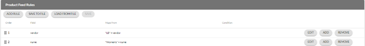 This functionality is available for retailers to set rules that will apply to all product feeds that are received from partners. The rules are applied before the items are uploaded to the retailer’s feed.