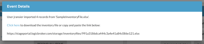 - Upload Files. Where you upload your inventory file (XLSX or CSV). Selecting Resend Items will resend the last file uploaded.