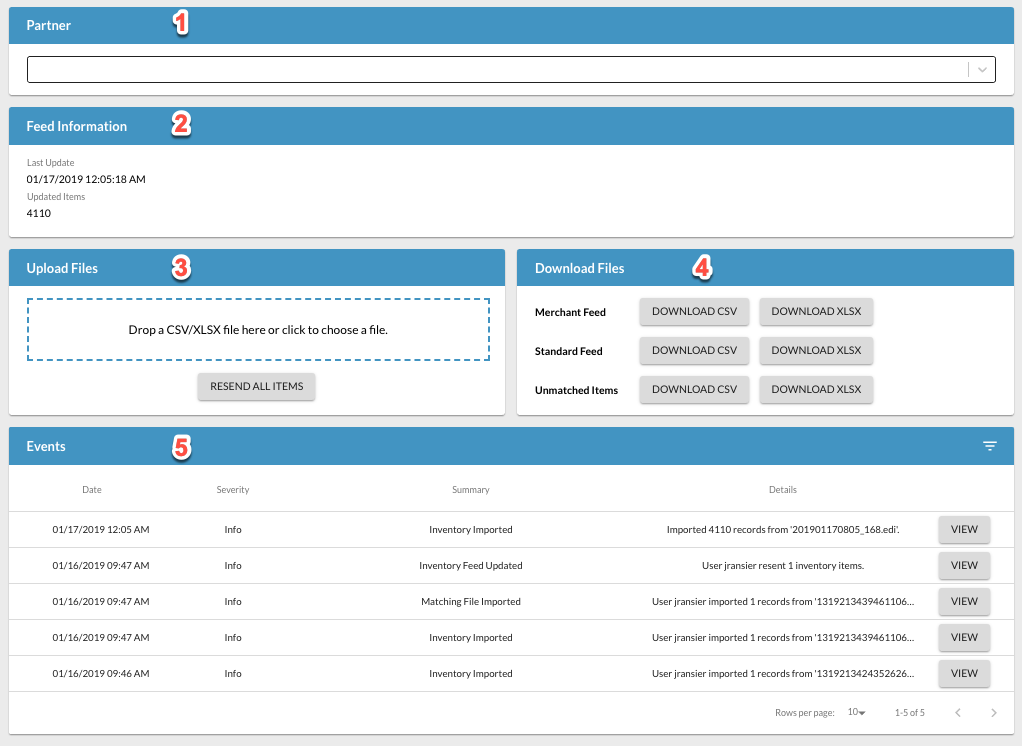 - Feed Information. Date of the last file received and the number of items in that file.
