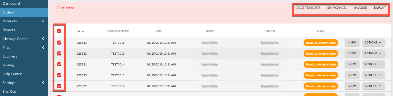 There are several ways to bulk invoice from the Portal. The following is the easiest way to bulk invoice order(s).