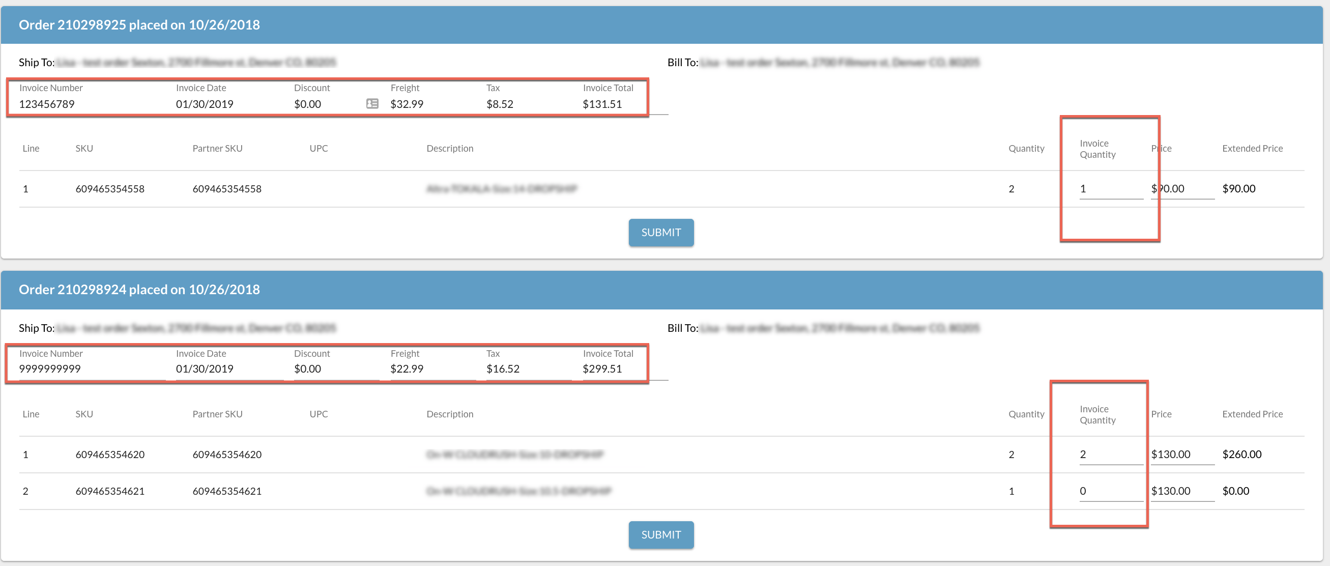 IMPORTANT: Make sure you provide Invoice Number, Invoice Date, and confirm that price at the item level, order level, and any freight or taxes is accurate. Once an invoice is submitted, there is not a way to edit the invoice.