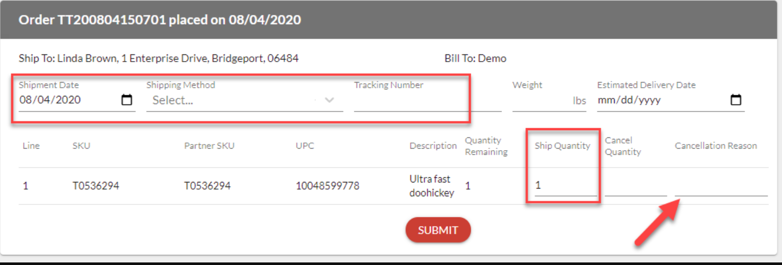 NOTE: Depending on the retailer, you may be required to enter in a specific cancellation code in the Cancellation Reason field. Additionally, some retailers may not allow partial shipment or cancellation of an item and/or order. You will receive an error message if you attempt these actions and there is additional information required.