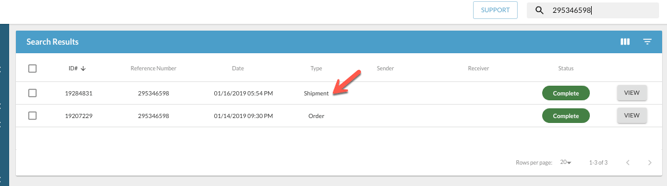 - Option 1: Using the Search bar at the top of any page in the Portal, enter in the order number. This will pull up all related documents to the order (the order as well as any existing shipments, returns and/or cancellations).
