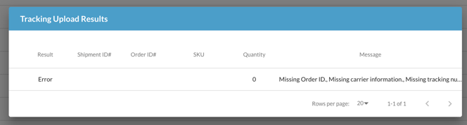 6. Once uploaded, the results will display with all successful and failed documents processed. If you are subscribed to receive failed tracking uploads ( Tracking Upload Failed), you will receive an email as well.