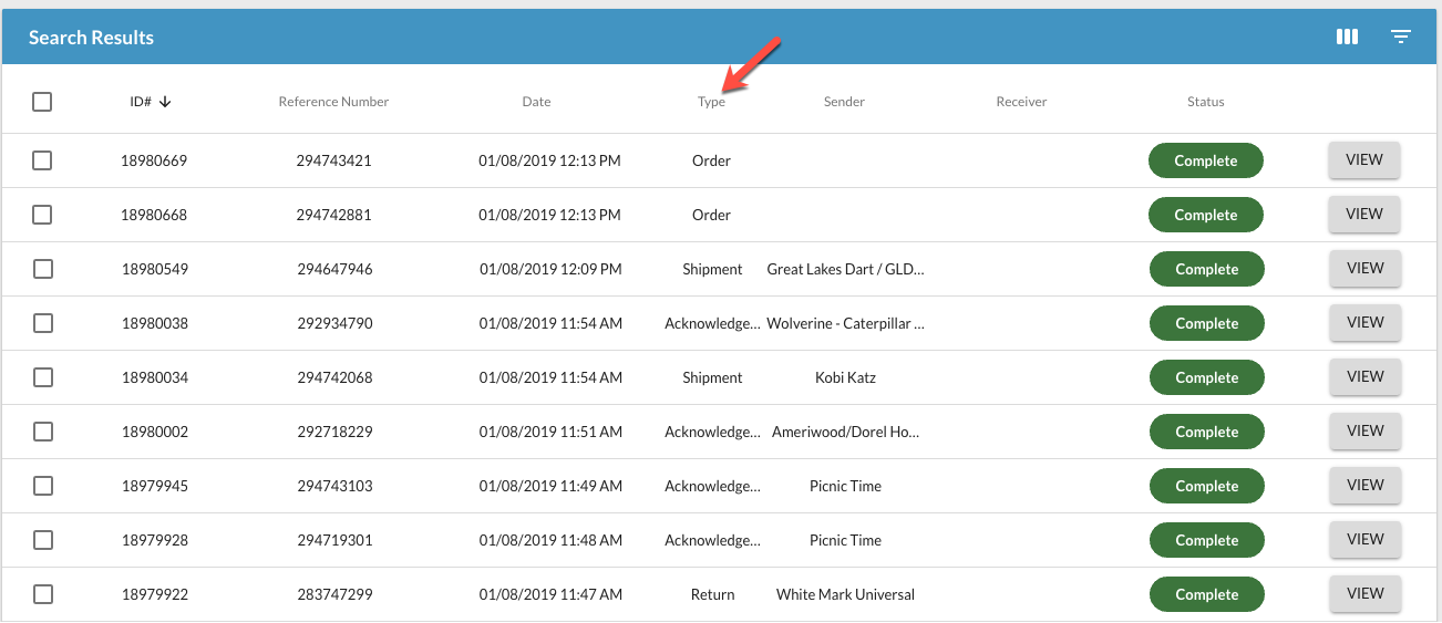 2. Click View on the right-hand side of the order for which you want to print a packing slip.