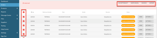 2. Select the orders you wish to invoice by clicking the appropriate checkboxes, or selecting all orders on a page. Then click on Invoice.
